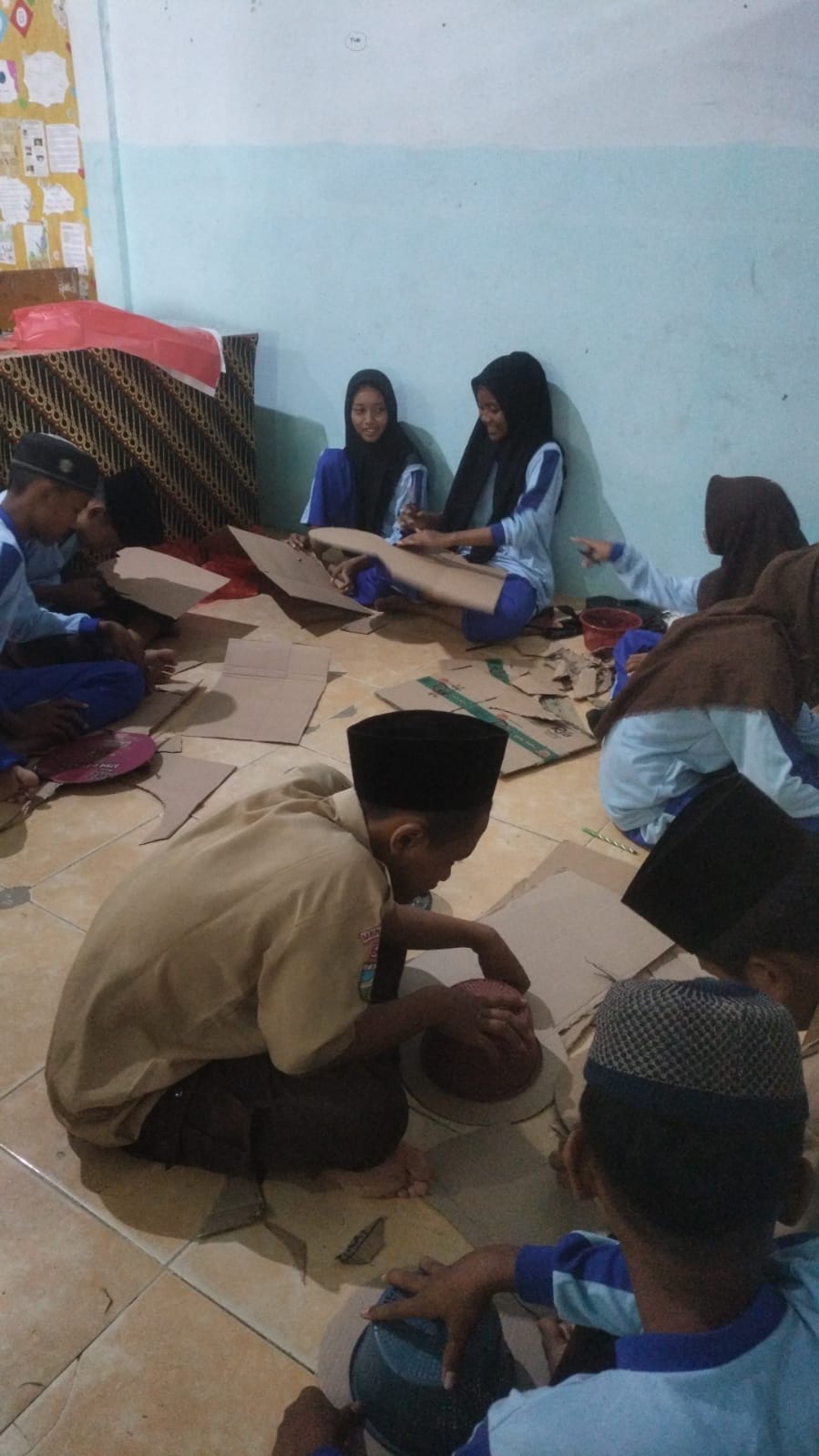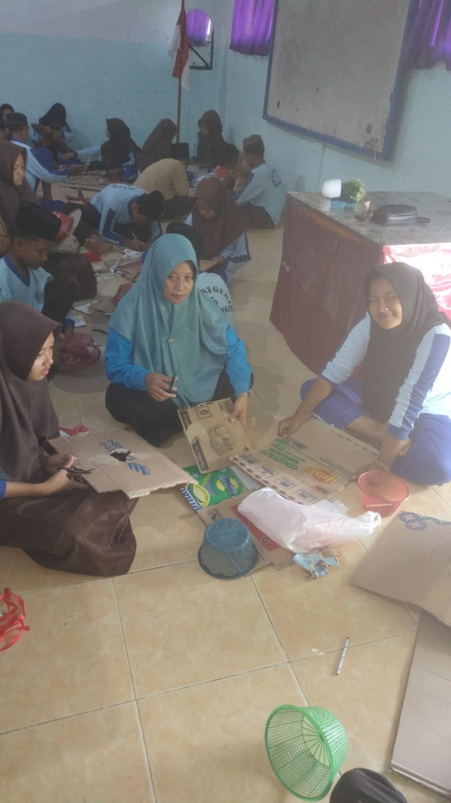 Acara tersebut dihadiri oleh seluruh siswa kelas VII,VIII dan guru. Dalam kegiatan ini, siswa diberikan materi mengenai pentingnya daur ulang dan pemanfaatan kembali bahan bekas. Setelah itu, mereka langsung terlibat dalam praktik pembuatan topi dengan bahan-bahan seperti kardus Bekas, pembungkus buah, dan berbagai aksesoris yang tidak terpakai.