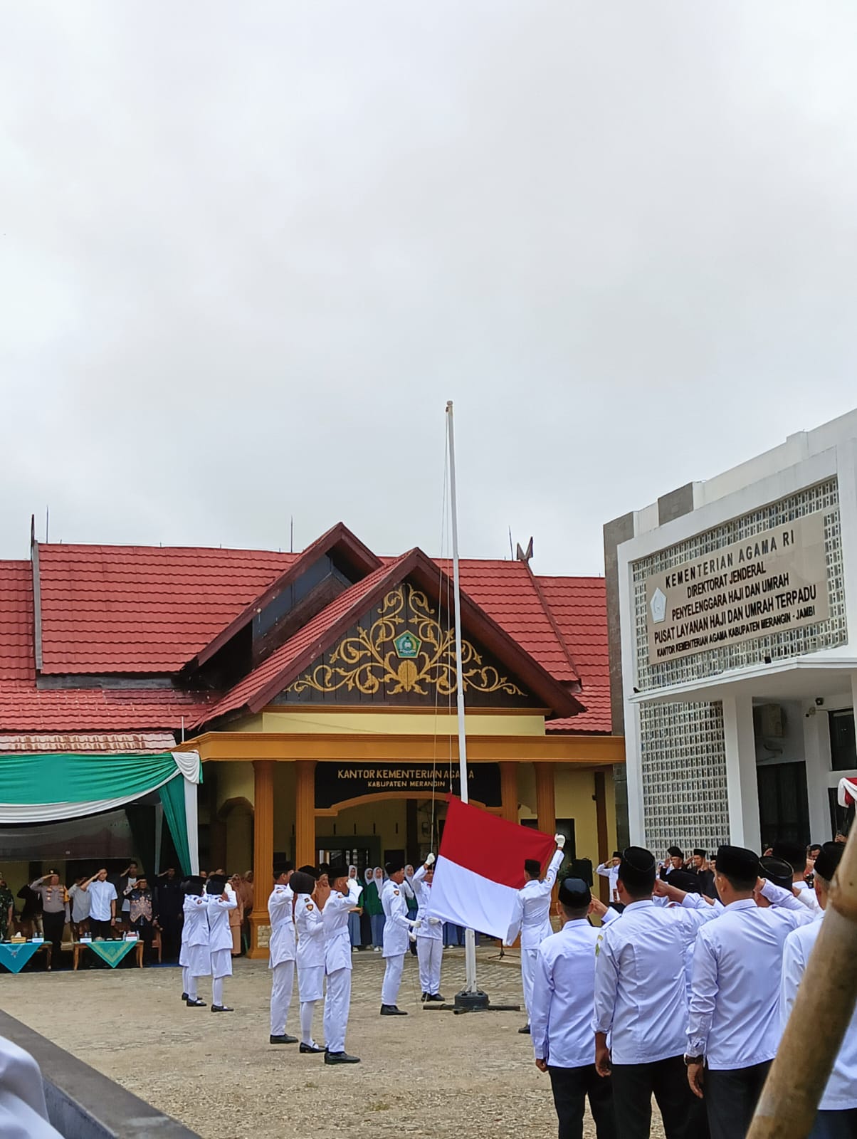 Upacara yang berlangsung khidmat tersebut dihadiri oleh jajaran pegawai Kemenag Kabupaten Merangin, serta perwakilan dari berbagai instansi pendidikan dan masyarakat setempat. Majelis Guru MTsN 6 Merangin hadir dengan penuh semangat sebagai bentuk penghormatan atas perjalanan panjang Kementerian Agama dalam memajukan pendidikan, agama, dan budaya di Indonesia.