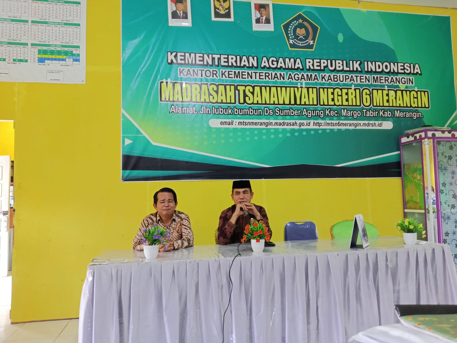 Merangin, 10 April 2025– Kepala Kantor Kementerian Agama Kabupaten Merangin melakukan kunjungan mendadak ke Madrasah Tsanawiyah Negeri (MTsN) 6 Merangin pada kamis pagi (10/04). Kunjungan ini bertujuan untuk meninjau secara langsung proses kegiatan pembelajaran yang berlangsung di madrasah tersebut.