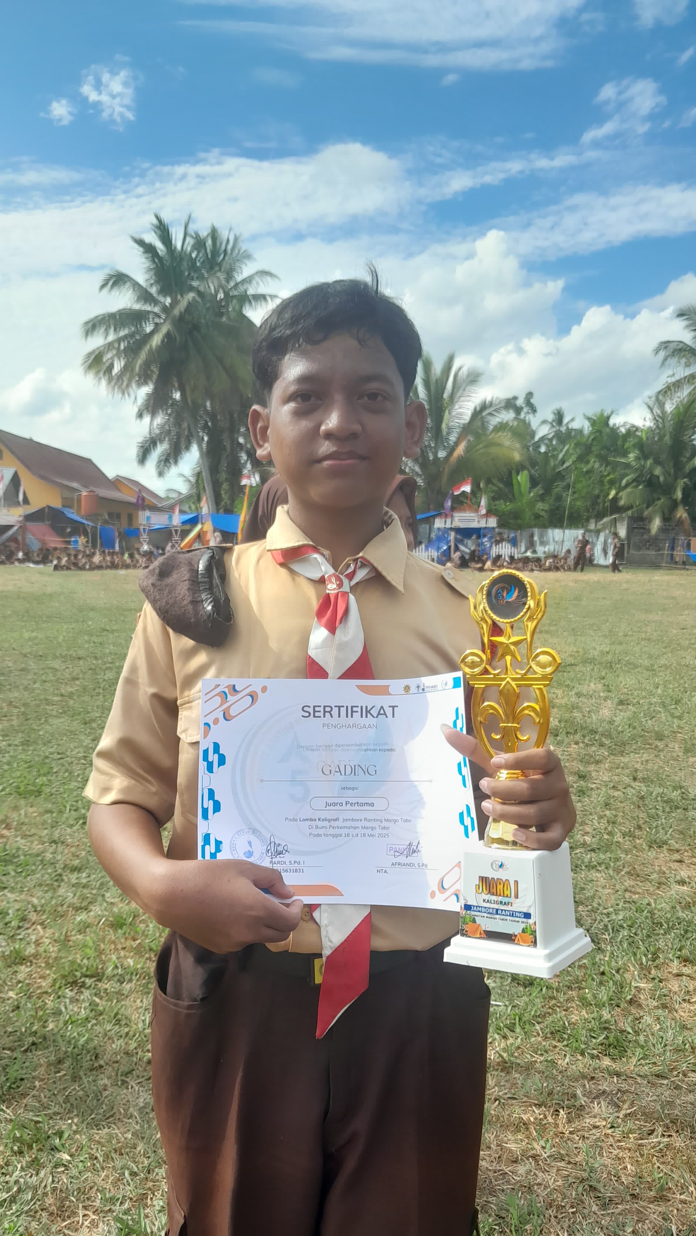 Merangin, 18 Mei 2025 — Prestasi membanggakan kembali ditorehkan oleh kontingen MTsN 6 Merangin dalam ajang Jambore Ranting Margo Tabir yang digelar pada 16 hingga 18 Mei 2025. Salah satu peserta dari kontingen MTsN 6 Merangin berhasil meraih Juara 1 Lomba Kaligrafi, mengungguli peserta lain dari berbagai sekolah se-Kecamatan Margo Tabir.