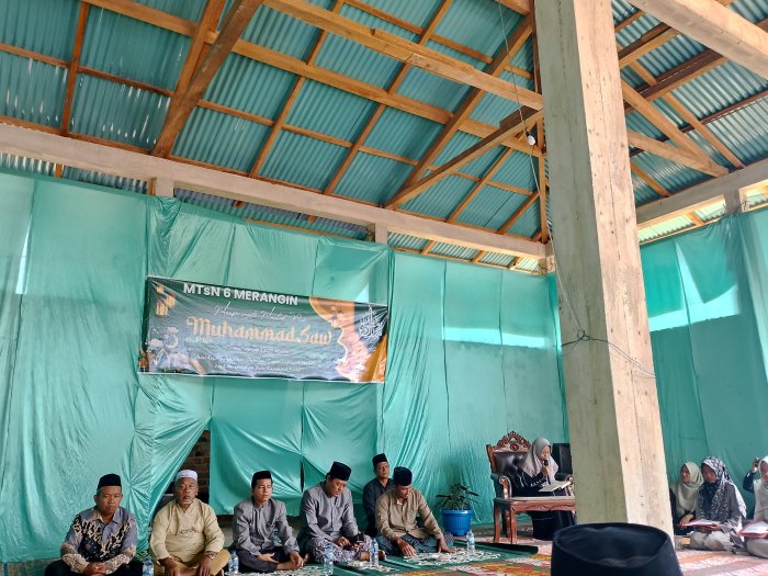 MTsNegeri 6 Merangin mengadakan peringatan Maulid Nabi Muhammad SAW 1447 Hijriah dengan suasana khidmat dan meriah pada Kamis 18 September 2025. Acara ini berlangsung di halaman madrasah dan mengangkat tema "Mari Kita Tingkatkan Iman dan Takwa kepada Allah SWT dan Kecintaan Kita pada Rasulullah SAW".