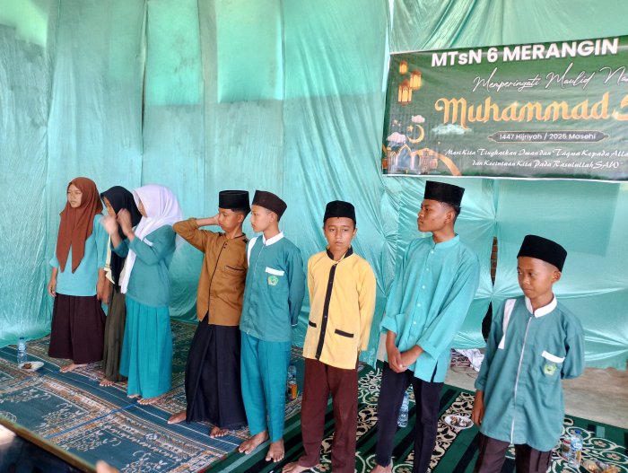 Merangin, 22 September 2025 , Dalam rangka memperingati Maulid Nabi Muhammad SAW 1447 H, MTsNegeri 6 Merangin mengadakan kegiatan santunan kepada siswa-siswi yatim dan piatu yang terdata di lingkungan madrasah. Kegiatan ini berlangsung khidmat dan penuh haru di aula MTsN 6 Merangin pada Senin, 18 September 2025.