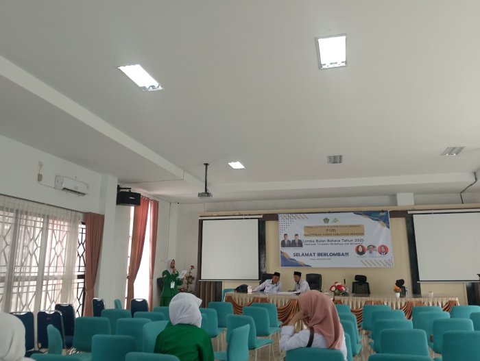 Acara lomba yang diselenggarakan di Aula Kementerian Agama Kabupaten Merangin ini berlangsung meriah. Para peserta dari berbagai madrasah menampilkan kemampuan terbaik mereka dalam membawakan acara dengan penuh percaya diri dan kreativitas.