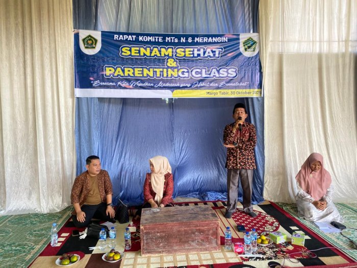 Margo Tabir, 30 Oktober 2025 Dalam rangka meningkatkan semangat hidup sehat dan mempererat hubungan antara pihak madrasah, guru, wali murid serta peserta didik, MTsNegeri 6 Merangin menggelar kegiatan Senam Sehat dan Parenting Class pada hari ini, Kamis 30 Oktober 2025 .Kegiatan ini berlangsung meriah di halaman madrasah dan diikuti oleh seluruh siswa-siswi, guru, serta tenaga kependidikan MTsNegeri 6 Merangin.