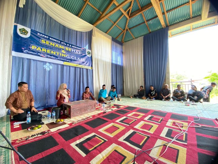 Acara berlangsung di mushola madrasah dengan suasana yang hangat dan penuh antusiasme. Kegiatan dibuka dengan sambutan dari Kepala MTsNegeri 6 Merangin yang menyampaikan pentingnya kegiatan parenting sebagai sarana mempererat kerja sama antara madrasah dan orang tua dalam mendidik anak-anak.
