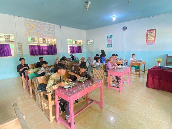 Sejak pagi, suasana di MTsNegeri 6 Merangin tampak berbeda dari biasanya. Siswa-siswi dengan wajah gembira berbaris rapi untuk menerima menu makan bergizi yang telah disiapkan. Dalam pelaksanaan hari pertama ini, pihak madrasah menyediakan makanan sehat dengan menu seimbang yang mencakup nasi, lauk pauk bergizi, sayuran, dan buah.