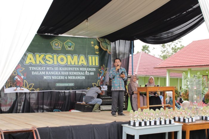Kepala MTsN 6 Merangin menyampaikan rasa syukur serta apresiasi kepada seluruh siswa, guru pembimbing, dan panitia yang telah bekerja keras selama pelaksanaan AKSIOMA ke-3. Ia menegaskan bahwa prestasi ini merupakan bukti komitmen madrasah dalam mengembangkan potensi akademik dan nonakademik peserta didik. Menurutnya, keberhasilan ini tidak lepas dari kerja sama dan dedikasi seluruh warga madrasah.